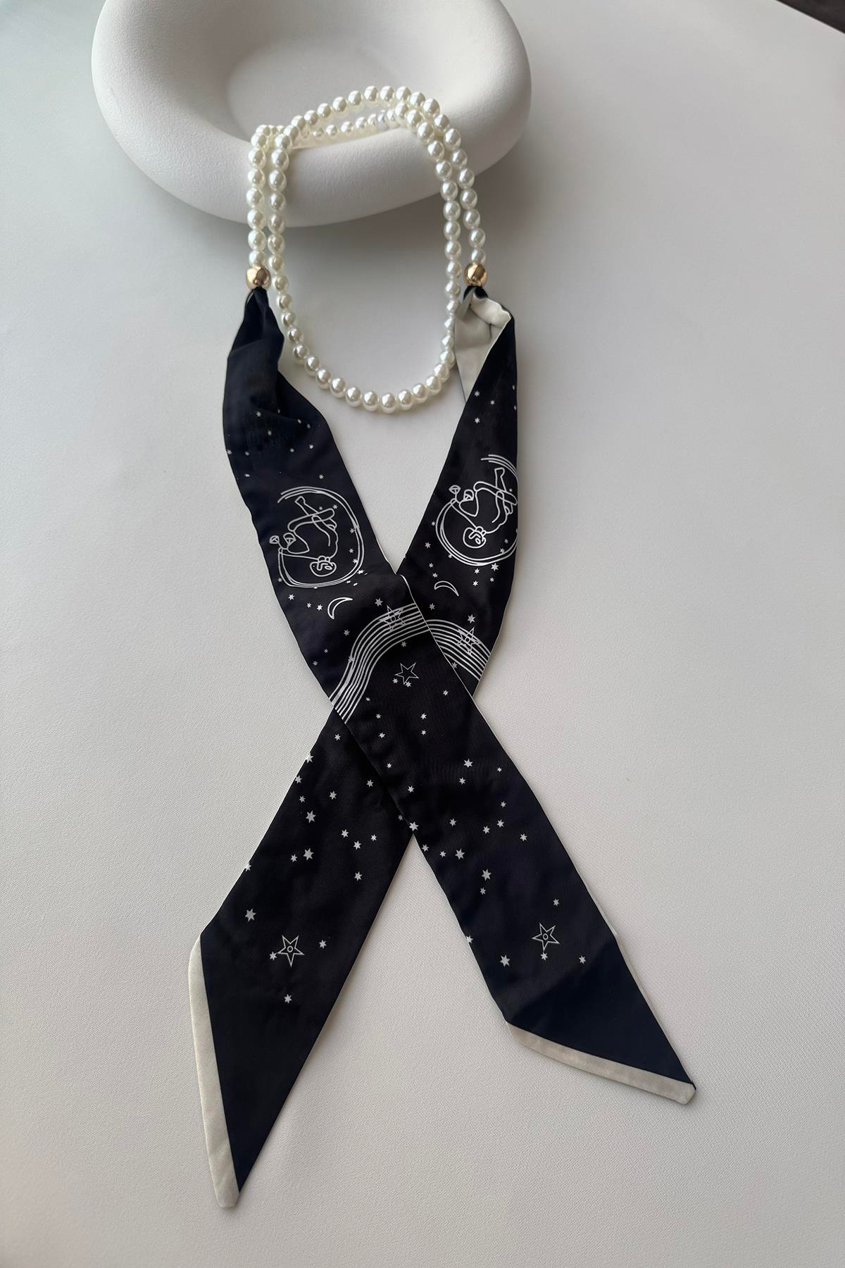 İNCİLİ UZUN FULARLI KOLYE