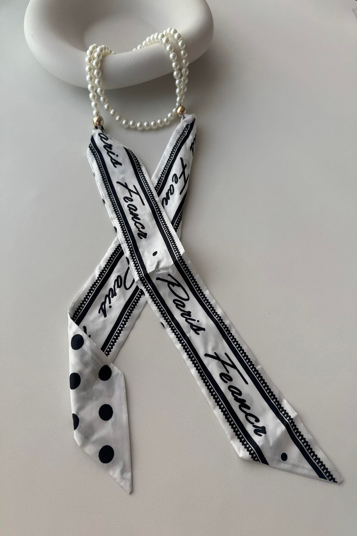 İNCİLİ UZUN FULARLI KOLYE